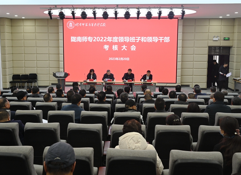 根据中共甘肃省委、中共陇南市委统一安排,2月20日,由兰州工业学院党委委员、组织部部长焦爱胜为组长的省委考核组,市远程办二级主任科员邵晰彪、市纪委监委纪检监察干部监督室副主任姜文为成员的市委考核组对我校省管领导班子、领导干部以及市管领导干部进行2022年度考核。党委书记余学军,党委副书记、校长李艳红,党委委员、副校长张建辉、任永峰、王胜青,党委委员、纪委书记、监察专员镡旭东,全体中层干部、正高级职称教师代表、省党代会代表共110余人参加了会议。会议由余学军主持。