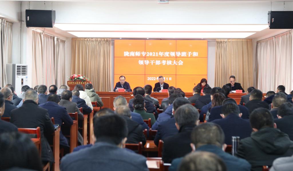 根据省委组织的统一安排,3月1日上午,省委考核组组长、省委组织部干部三处四级调研员邵小彪,省委考核组成员、兰州财经大学党委组织部干部杜霈,市委考核组副组长、市委直属机关工委副书记吴选平;市委考核组成员、市乡村振兴局社会动员科科长徐杨,市远程办副主任张鹏飞,市作风办干部符秀芳来我校开展2021年年度考核。考核组通过述职测评、民主测评与评议、个人谈话方式对我校领导班子和领导干部政治素质和年度工作进行了现场考核。党委书记余学军,党委副书记、校长李艳红,党委副书记王莹成,党委委员、副校长张建辉、任永峰、王胜青、王录全,党委委员、纪委书记、监察专员镡旭东,全体中层干部、省人大代表和具有教授专业技术职务的教师共110余人参加了考核测评大会。