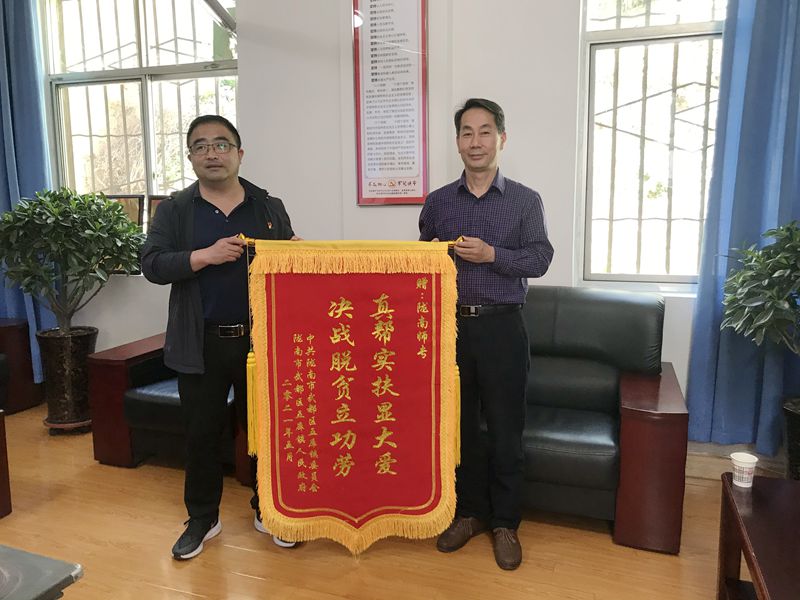 会上,武库镇党委书记尹爱典对我校帮扶工作队给予了高度评价,认为我校选派的驻村帮扶队员沉得深、干得实、措施多,深受百姓认可。他希望学校一如既往关心支持五库镇的发展,继续深入开展乡村振兴的工作任务,为助力五库经济社会高质量发展贡献新的力量。同时,尹爱典代表五库镇党委政府向我校赠送了锦旗。