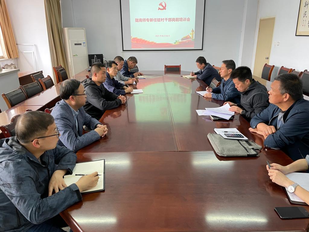首先,张益斌同志宣读了省委组织部《关于同意调整驻村干部的批复》、《甘肃省驻村帮扶工作队管理办法》及《关于新任驻村干部任职的通知》(校党委发〔2021〕17号)文件。从人员选派、职责任务、教育管理、考核奖惩、组织保障等方面对新任驻村干部进行了培训。