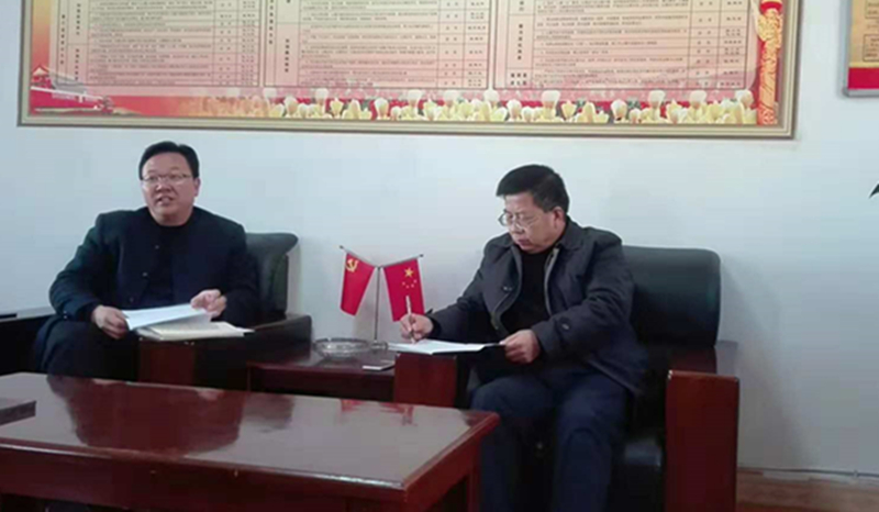 校长刘先春与五库镇镇长张文凤商讨五库镇未来产业发展