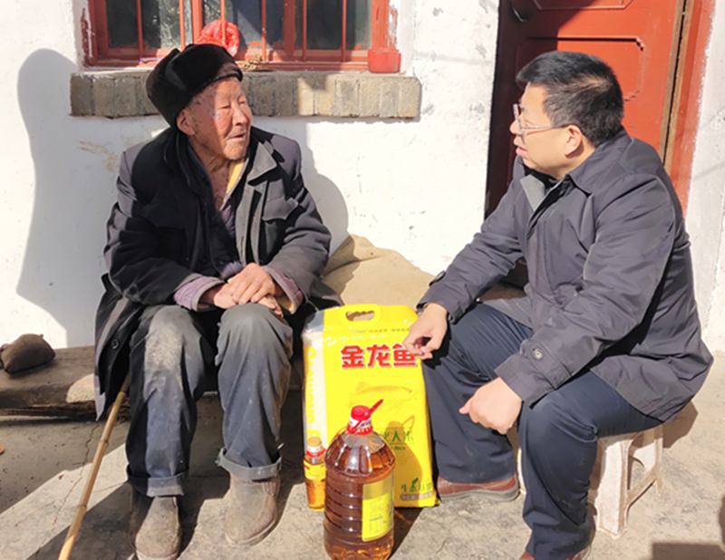 校长刘先春看望帮扶贫困户李占全