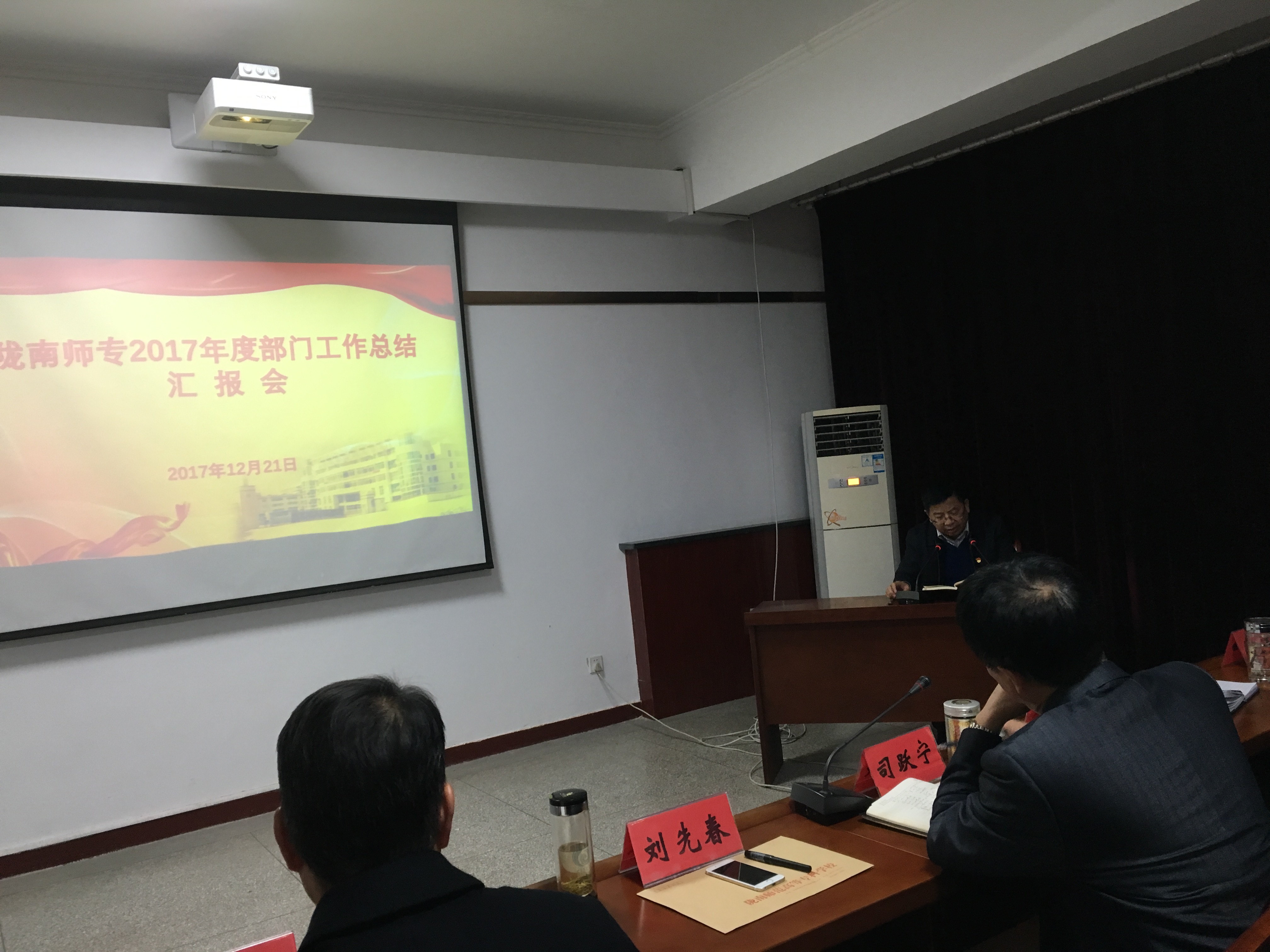 12月21日下午,学校举行2017年度部门工作总结汇报会。党委书记司跃宁,校长刘先春,党委副书记、纪委书记王莹成,副校长张建辉、任永峰、王胜青、王录全、张勇出席会议,各学院、各处室职能部门负责人、党员干部、教师代表共50余人参加了会议。会议由王莹成主持。