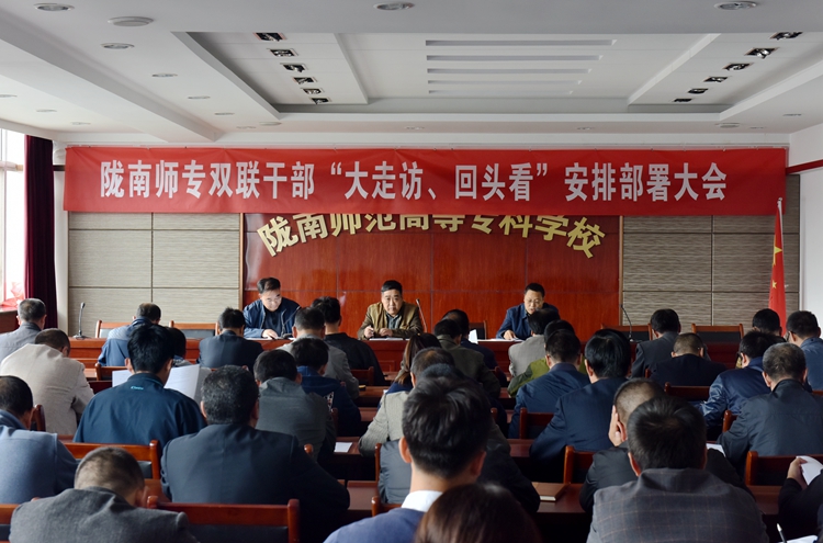 9月27日全省双联行动“大走访、回头看”活动动员大会后,为进一步把我校双联干部心思和精力聚焦到双联行动上,使双联干部始终带着感情、充满激情地投身到双联行动中,把双联行动做得更实、更好、更有成效。校党委高度重视,在原有双联干部的基础上增加力量,又抽调了13名干部,同时研究制定了陇南师专开展“大走访、回头看”安排意见。10月8日下午,专题召开了双联干部“大走访、回头看”活动安排部署大会,党委委员、双联负责人王录全作讲话,党委组织部部长蔺兴龙主持会议。3个驻村帮扶队长、1个村第一书记、6个村双联干部共63人参加会议。