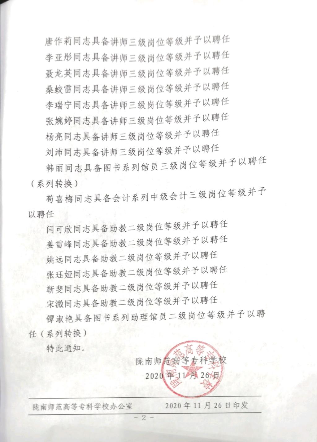 关于陈晖等24名同志聘任相应岗位等级的通知
