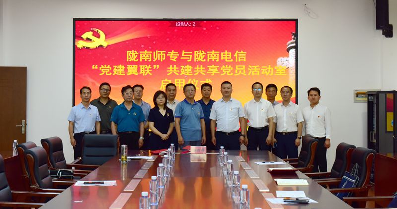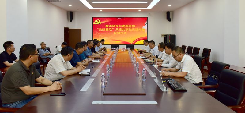 7月19日,我校与中国电信陇南分公司在图书馆会议室举行“党建翼联”共建共享党员活动室启用仪式。中国电信陇南分公司党委书记、总经理刘亮,陇南分公司副总经理冯华,陇南分公司副总经理王阳,成县电信公司总经理胡剑平,我校党委书记余学军、校长李艳红、党委副书记王莹成,副校长张建辉、任永峰、王胜青、王录全、张勇,纪委书记、监察专员镡旭东,学校办公室、组织人事处、信息中心等相关处室负责人出席启用仪式。启用仪式由张勇主持。