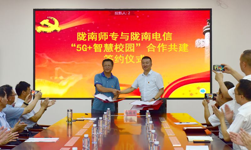 余学军和刘亮代表学校和电信分公司签订了协议书。
