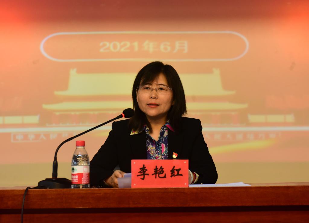 李艳红希望全校共产党员以立德树人为根本,以教书育人为己任,以受表彰的先进集体和优秀个人为榜样,见贤思齐、争当先锋,不忘初心、牢记使命,锐意进取,爱岗敬业,立足新起点、新征程,以更加强烈的使命担当、更加饱满的精神状态,积极投身于立德树人事业之中,为建设特色鲜明的师范类院校而努力奋斗,向党的百年华诞献礼!