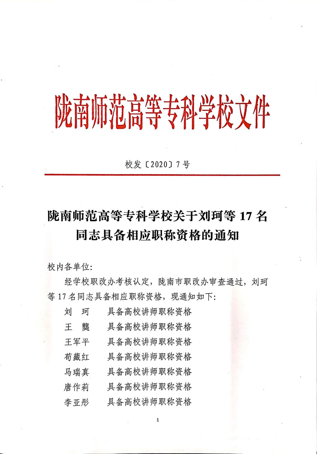 关于刘珂等17名同志具备相应职称职资格的通知
